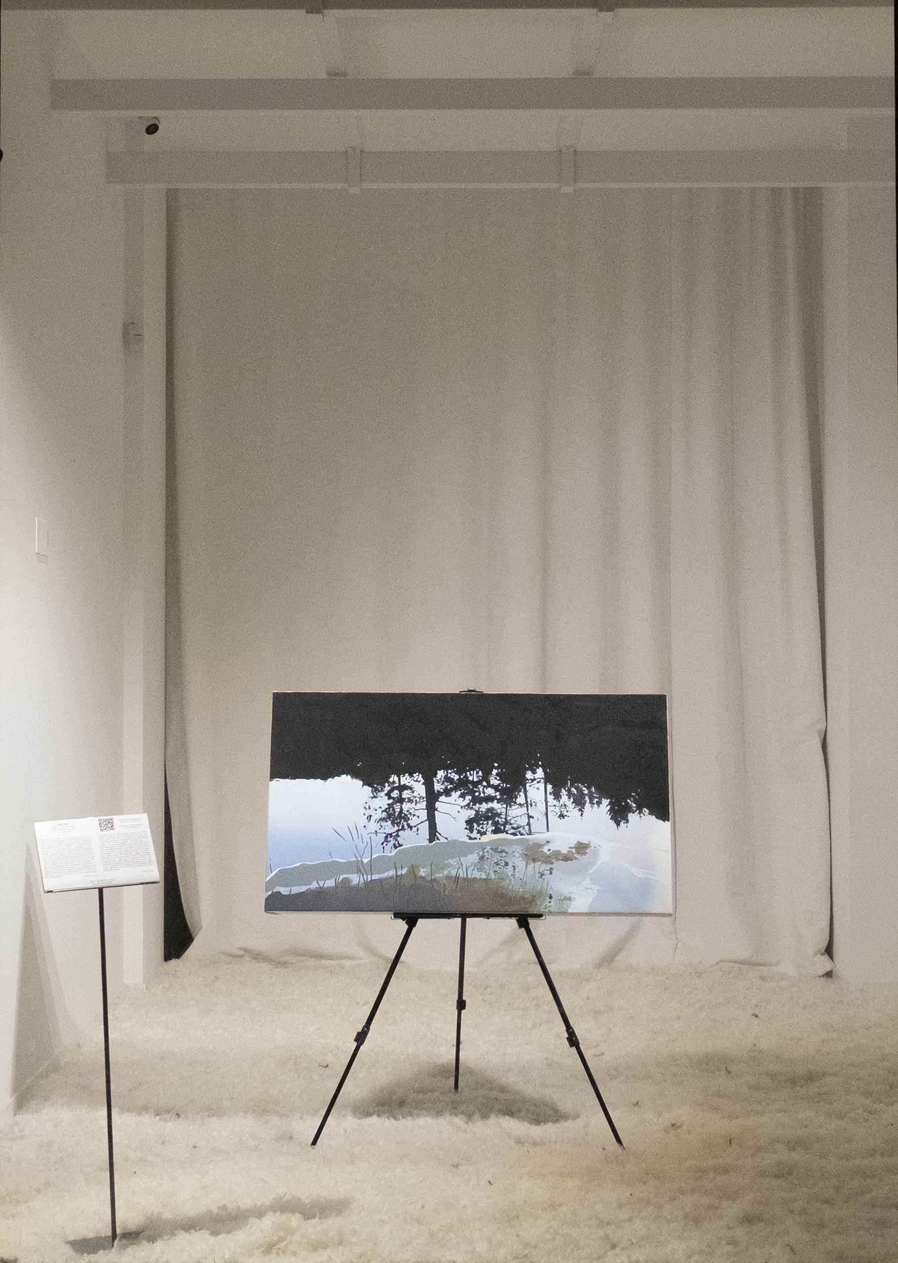 A worldview from an intimate point in nature. NILS-UDO, chooses to make the least possible intervention for each specific artwork. And now from installation to painting, the media go full circle, to an early stage of his career as an artist in Paris when he was a painter. NILS-UDO returns to painting. In so doing he provides us with a microcosm of the world replete with the reflections of trees in the calm waters, so many details we perceive in an instant. We cannot see the scene in its entirety and this makes it all the more complete, for experience in real life is like that. We get a glimpse or coup d’oeil, where the reflections suggest a deeper infinitude, an intuitive inner world. This is a serene place, even surreal for there are no human imprints. The transience of this scene makes it all the more intuitive. This landscape is a metaphor for times of change. Nature is what remains. NILS-UDO has captured the very transitory nature of life, with nature as the permanent witness to our own experience of being.